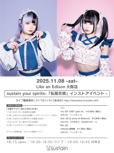 【大阪店】 2025-11-08 sustain『sustain your spirits-「私服交換」インストアイベント-』 ミニライブ&特典会